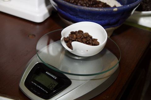 Step 1 : The high quality Italian coffee beans are weighed and freshly grounded on the spot.
