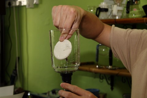 Step 4 : The coffee container is then inserted into the top of the glass carafe.