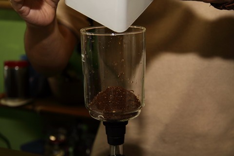 Step 2 : Coffee powder is poured into the stem of the coffee container with a filter attached.