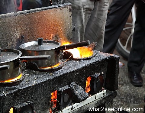 He still uses the old fashioned way to cook for his customers. The food is cooked over a charcoal stove with a few burners. Special mini fans are attached to it to keep the fire burning strong.