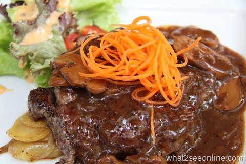 For those feeling carnivorous, go for the Ribeye Steak – RM17.90 served with sauté potato, mix lettuce and flavorful pepper mushroom sauce.