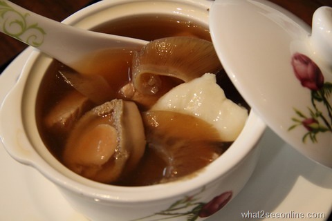 One of the expensive dishes on the menu was the Palace Style Buddha Jump Over The Wall. The soup was fabulous with a thick piece of abalone, shark fin and fish maw. It was double boiled, with a fantastic earthy aroma in an individual bowl.