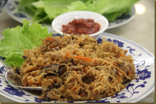 Plate of stir fried sengkuang, served with lettuce and spicy sambal belacan_resize