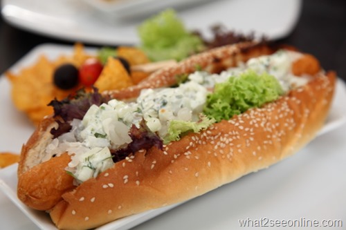 The jumbo sausages are made from beef and chicken with light seasoning and herbs. The chef takes good care in grilling the sausages, preventing them from drying out and shrinking.
