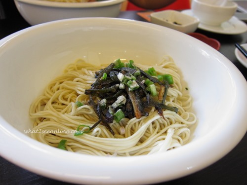 My favourite of the two is the scallion oil tossed noodles. The noodles are prepared with very few ingredients, but yet so deliciously tasty.