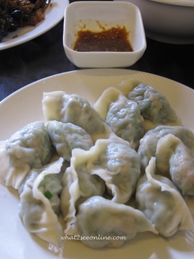 There are many different versions of dumplings, with anything from boiled to pan-fried. The first dish is boiled crescent shaped pork chive dumplings – bursting with freshness from loads of chives and meat. Whilst delicious eaten as it is, it also benefits with a dip in the accompanying vinegar mixture.