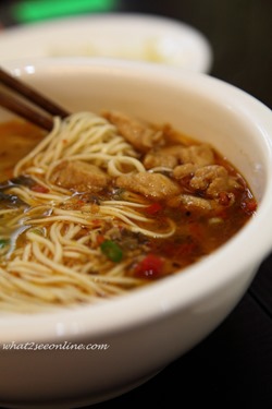 From the menu, one can order several different noodle dishes – steaming bowl of Spicy Meat Noodle RM12 and the dry Scallion Oil Noodles.