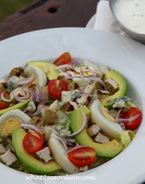 Chef Adrian had the Californian Cobb Salad made with a mix of cubed chicken, cherry tomato, hard-boiled egg, crispy bacon, avocado and cilantro. The refreshing simple salad was served with side of chive dressing.