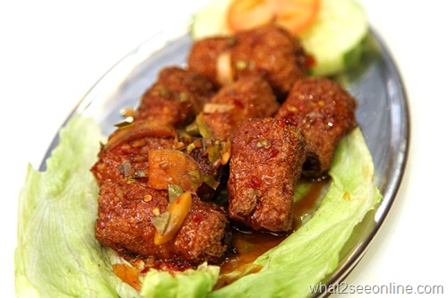The restaurant also caters for meat-lover. The Bai Kuat Wong with deep-fried pieces of pork cooked with sweet and sour sauce is the kind of comforting dish.
